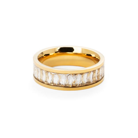 2024 Новое позолоченное кольцо из нержавеющей стали с прозрачным цирконом, 18 карат, 3 А