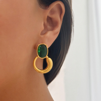Лидер продаж, ювелирный источник, 2024, уникальное позолоченное кольцо из нержавеющей стали 18 карат из нержавеющей стали, бохо, зеленое циркониевое кольцо для шоу, Dacner Girl